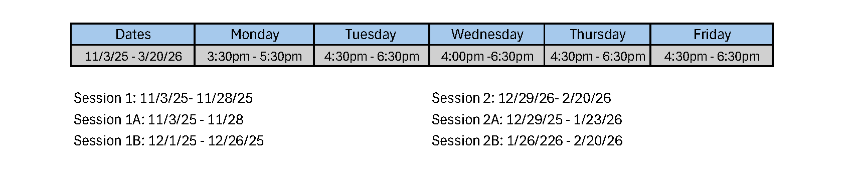 Session 1B 4-Week Program (12/1/2025 - 12/26/2025)